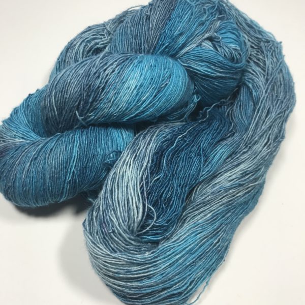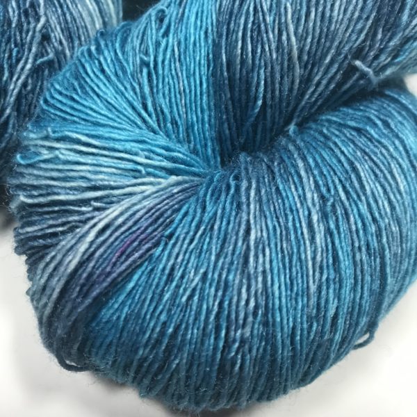 Auf dem Bild erscheinen die Stränge blauer. In Realität sind sie mehr türkis/blautürkis.