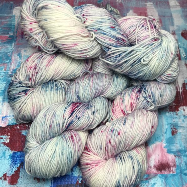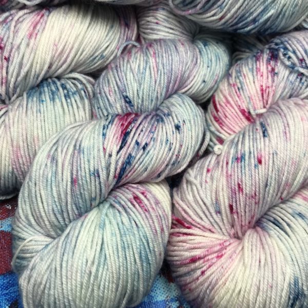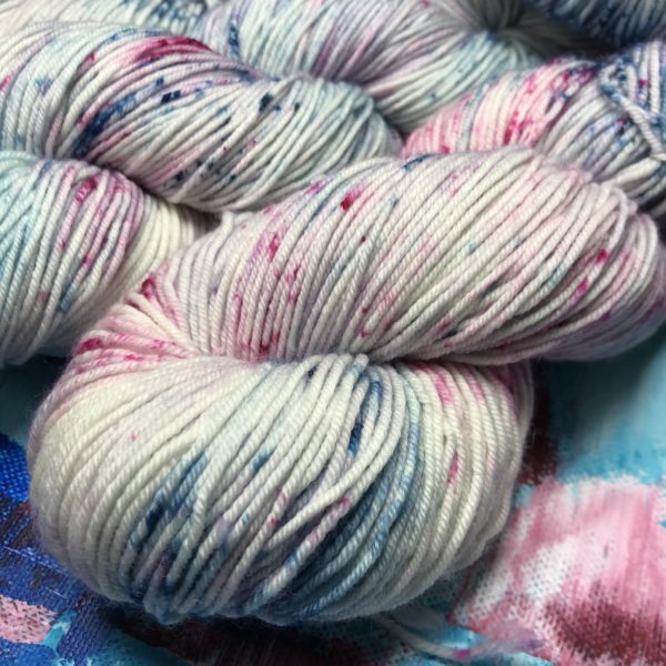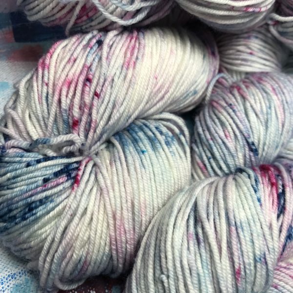Wer 100% Schurwolle mag ist hier genau richtig. Mit Blau, pink und speckles gelingt ein abwechslungsreiches Strickstück. Ganz individuell.