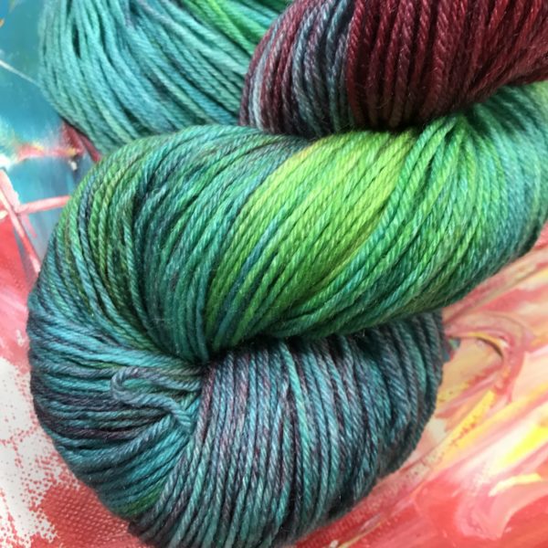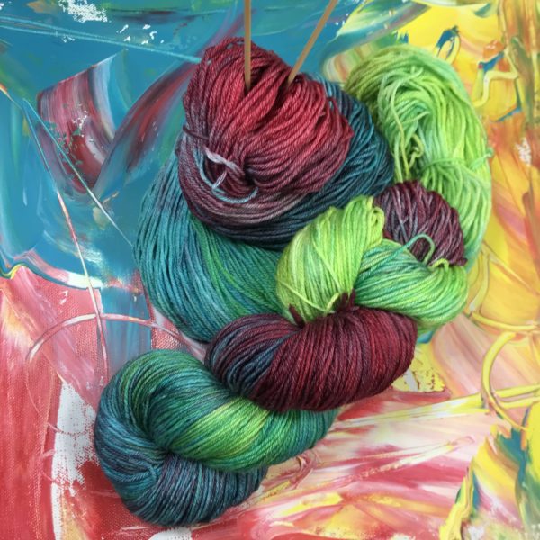 Die „Papagei“ Damen toben bunt übers Parkett: Gelb, Apfelgrün, Türkis, Rot. Alles in Farbverläufen und bestimmt nicht langweilig. Wie auf der Leinwand, so ähnlich auf der Wolle.
