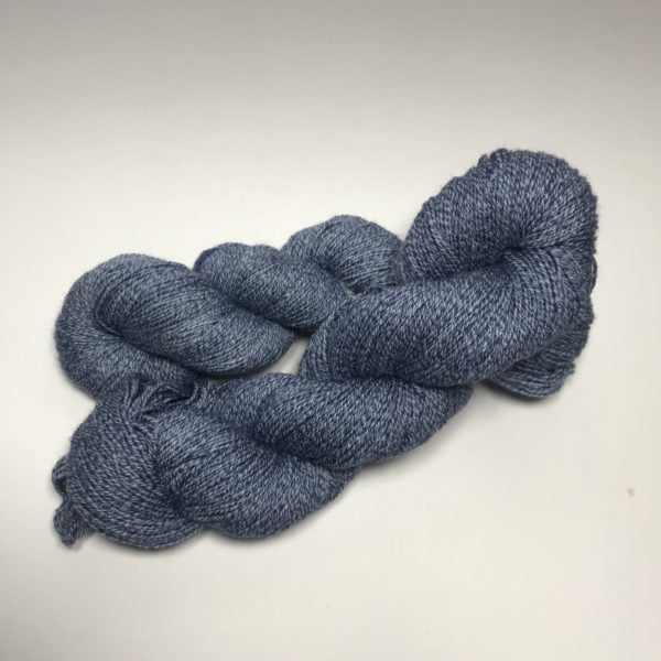 Das ist das kombinierte Garn Wolle(Merino)/Baumwolle/PA/Seide in einer mittelblauen Färbung. Die Struktur des Fadens bedingt einen melierten Effekt.