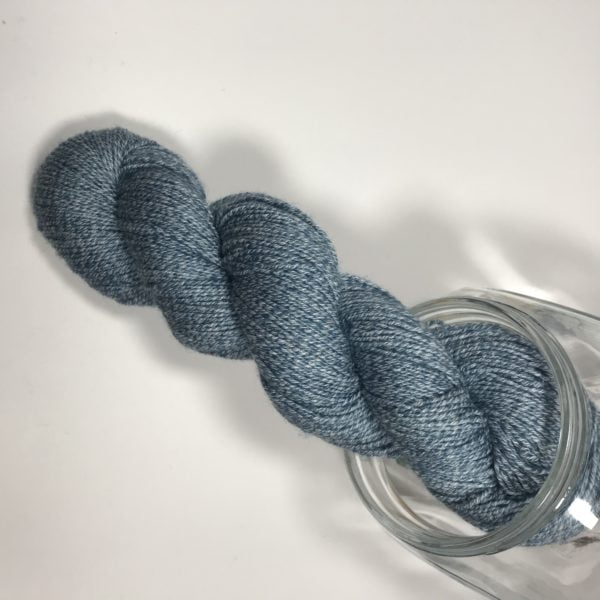 Das ist das kombinierte Garn Wolle(Merino)/Baumwolle/PA/Seide in einer hellblauen Färbung. Die Struktur des Fadens bedingt einen melierten Effekt.