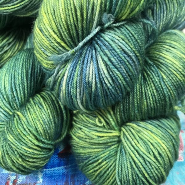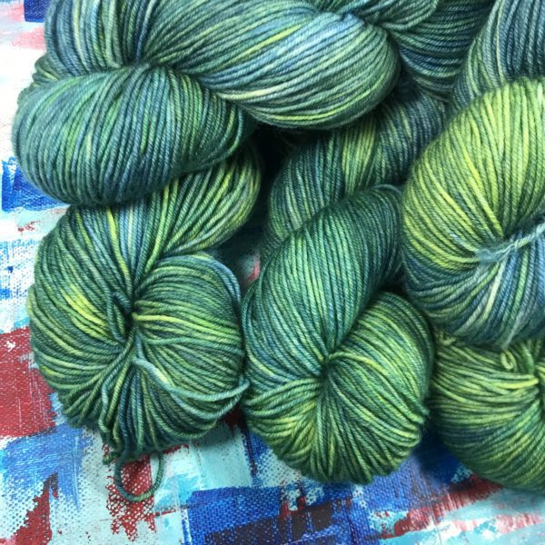 Jeder Strang, wie immer bei den handgefärbten Wollen, ein Unikat.